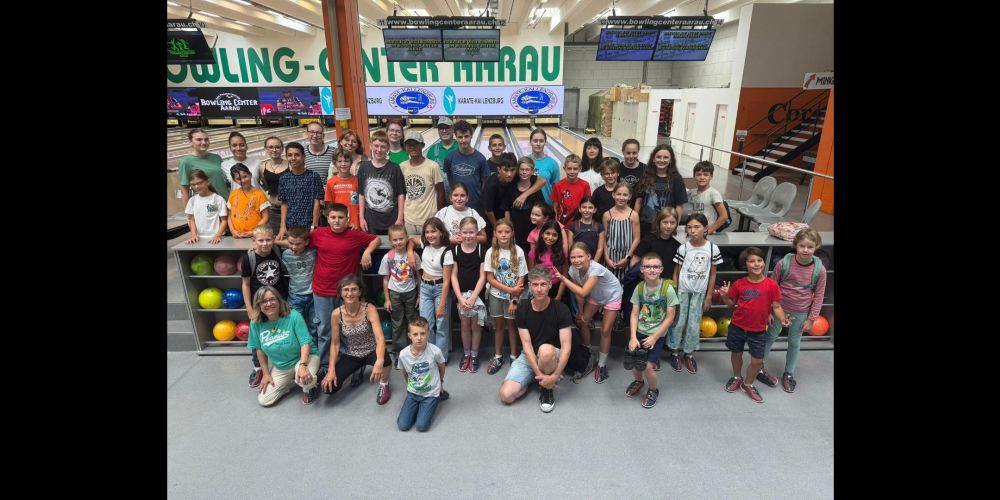 41 Junge Karatekas und 5 Jugendtrainer trafen sich am Samstag 17. August 2024 am Morgen in Lenzburg und machten sich mit dem Zug auf den Weg nach Aarau. Das Ziel: Das Bowling Center Aarau. Auf 8 Bahnen konnte man sich mit seinen Trainingskollegen zur Abwechslung nicht in der Turnhalle messen, sondern beim Bowling. Es wurde Kugel um Kugel nach vorne gerollt und mit jedem Durchgang steigerten sich die Kids (manchmal mehr manchmal weniger 🙂 ). Jedenfalls durften am Schluss der Bowlingsession die Kids durchaus zufrieden und vor allem hungrig, in Richtung Altstadt Aarau aufbrechen. Nach dem aktiven Teil wurden wir nämlich mit Pasta & Glace belohnt. Um 14:30 Uhr kehrten wir mit vollem Magen und glücklich nach Lenzburg zurück. Am Bahnhof Lenzburg angekommen, folgte dann noch eine weitere Überraschung, jeder Teilnehmer bekam aufgrund des Vereinsjubiläums noch ein tolles und nützliches Geschenk überreicht. Dankbar schauen wir auf einen erfolgreichen Event zurück.